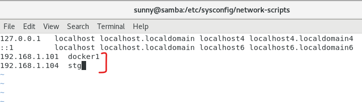 [root@samba network-scripts]# vi /etc/hosts