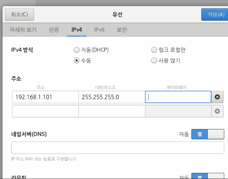 랜카드 추가 -> vmnet2(192.168.1.0/24) -> ifcfg-* 파일 수정