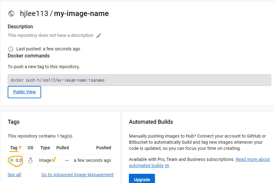 [root@Docker1 ~]# docker tag my-image-name:0.0 hjlee113/my-image-name:0.0