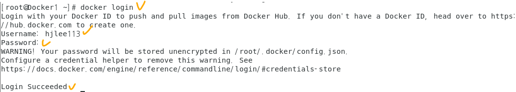 [root@Docker1 ~]# docker commit commit_container1 my-image-name:0.0 //아직 이상태로는 도커 허브에 올수 없다.