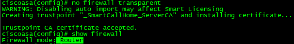 no firewall transparent //3계층 방화벽으로 되돌리기