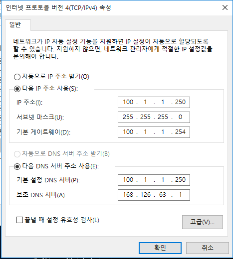-DNS 서버(100.1.1.250)