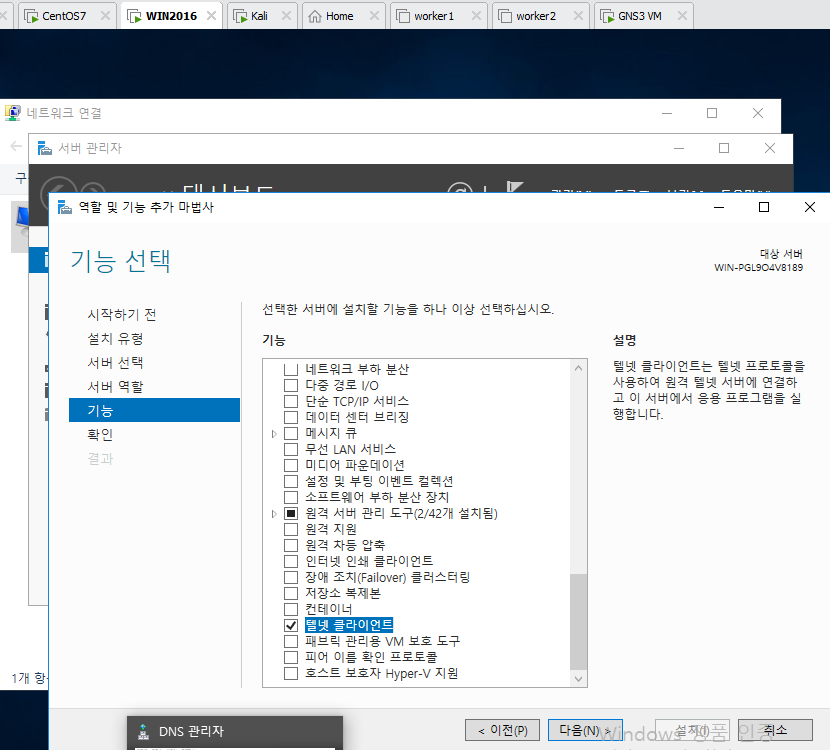 여기에 telnet이 안보임
